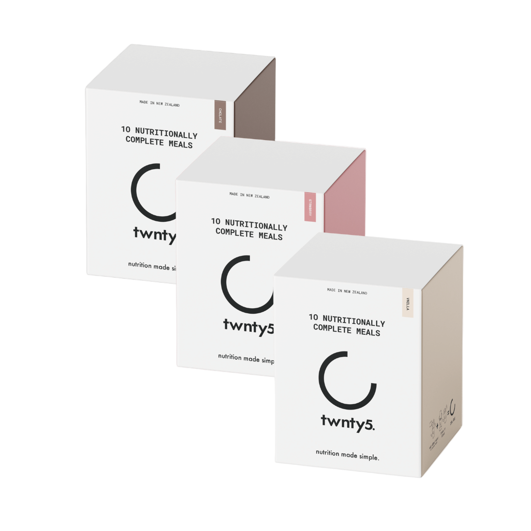 Because each Twnty5 meal contains 25% RDI (Recommended Dietary Intake) of all the 26 essential nutrients we need, based on Australia and New Zealand Government Health Nutrient Reference Values.